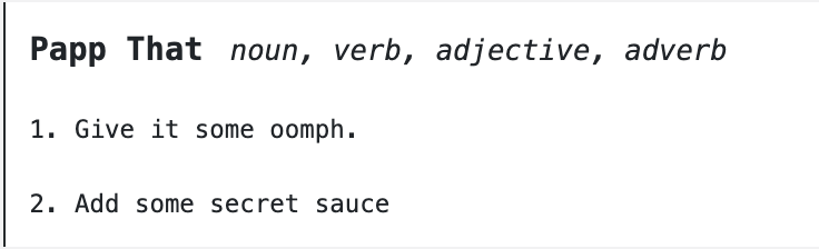 To “Papp” something means whatever the context calls for — an adaptable modifier, if you will. Feeling excited? No… you’re feeling Papp-tastic.